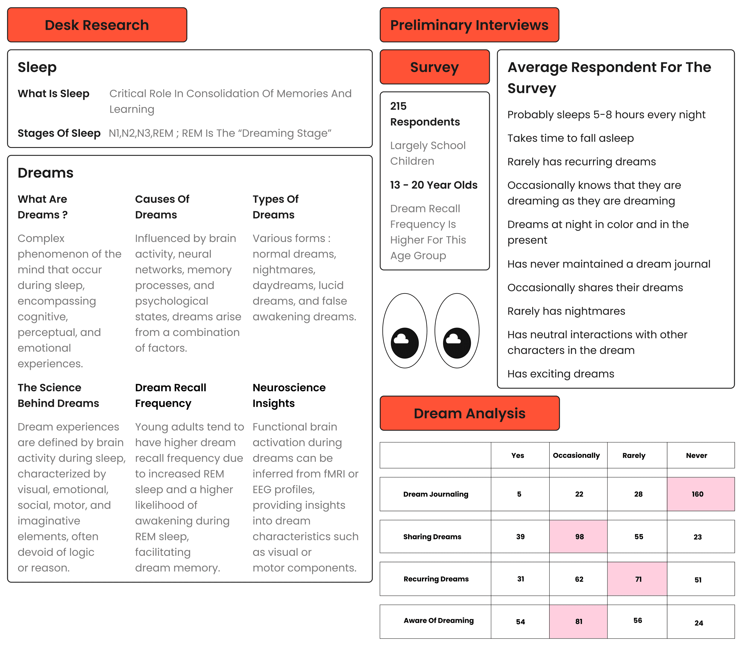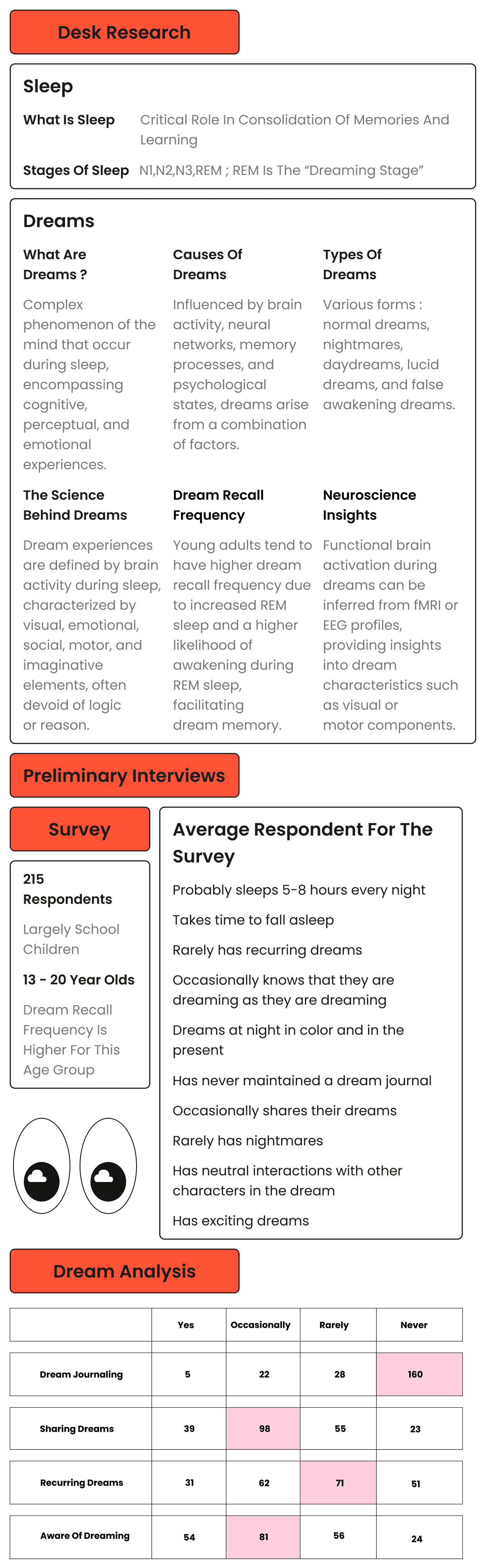 Learning about a new space - Understanding sleep science, dream science and a specific user group.