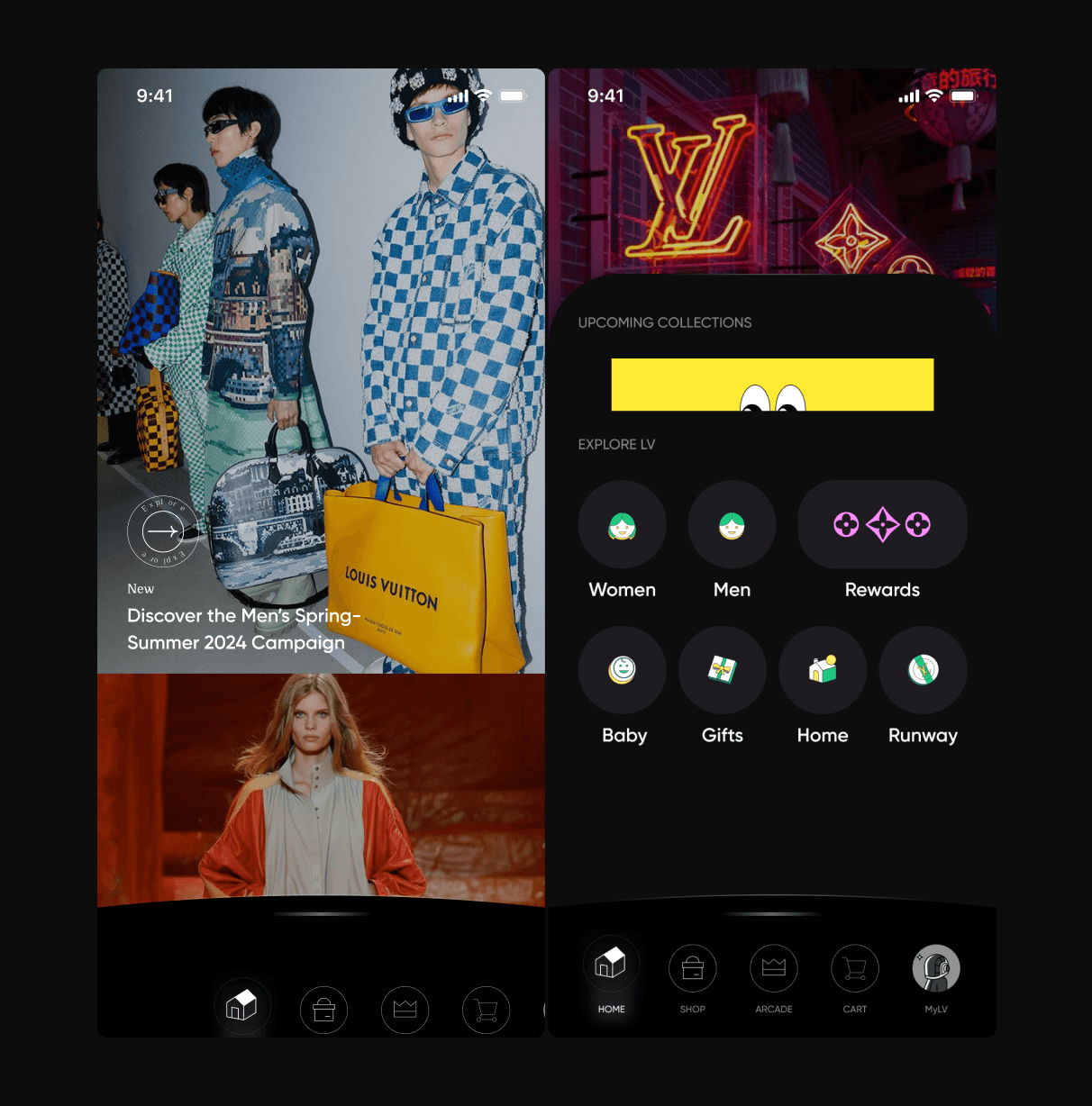 Bold Design Choices : Injected bold, vibrant colors and creative elements to give our app a distinct personality. The design isn't just immersive but intentionally makes a statement that grabs attention and embodies a unique, dynamic user experience previously absent in the Louis Vuitton app.