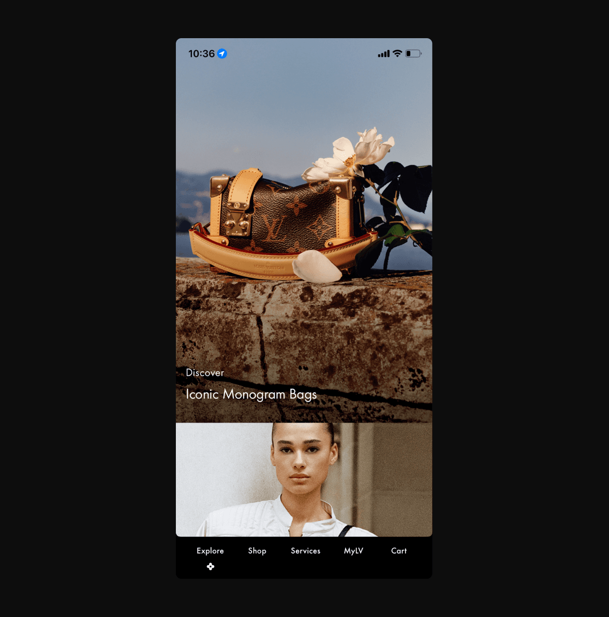 Despite incorporating elements of its brand identity, Louis Vuitton's UI lacks luxurious experience.