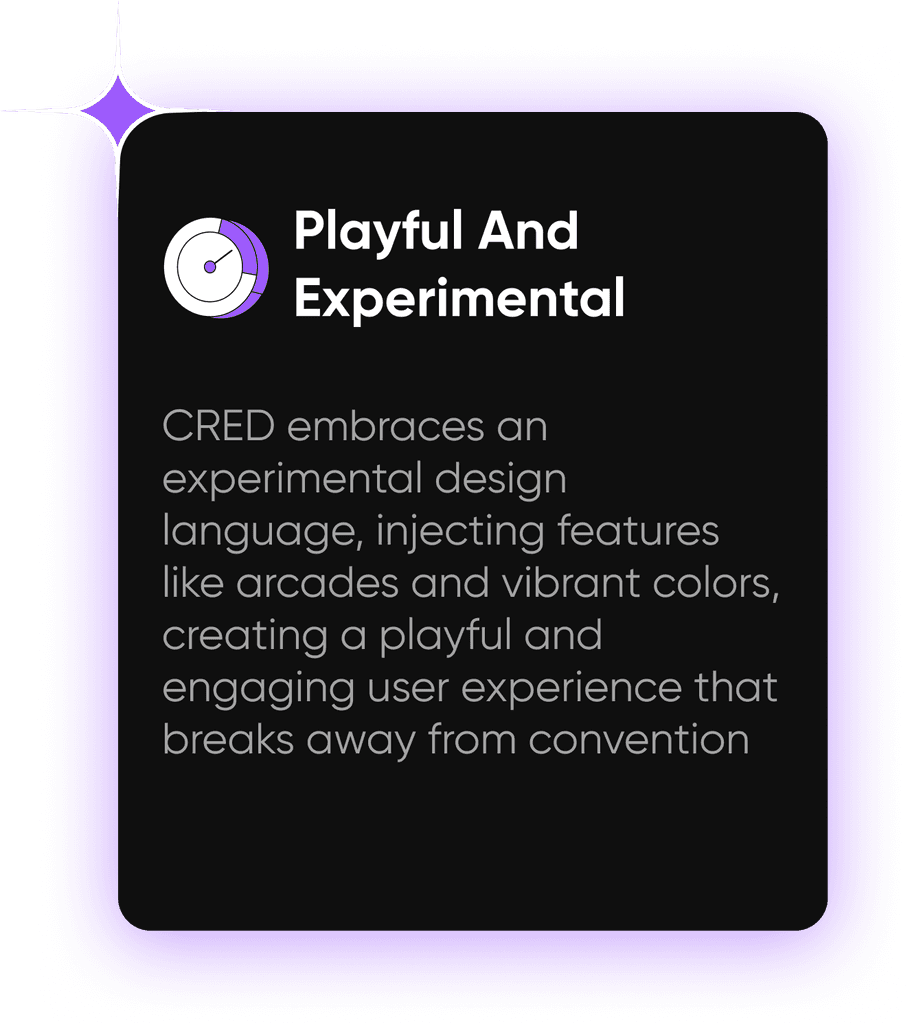 Motion Graphics : Integrated CRED's motion design elements into our system, including their unique micro-interactions. Users now enjoy a captivating glow effect and dynamic 3D icons when navigating buttons, elevating the interactive experience.
