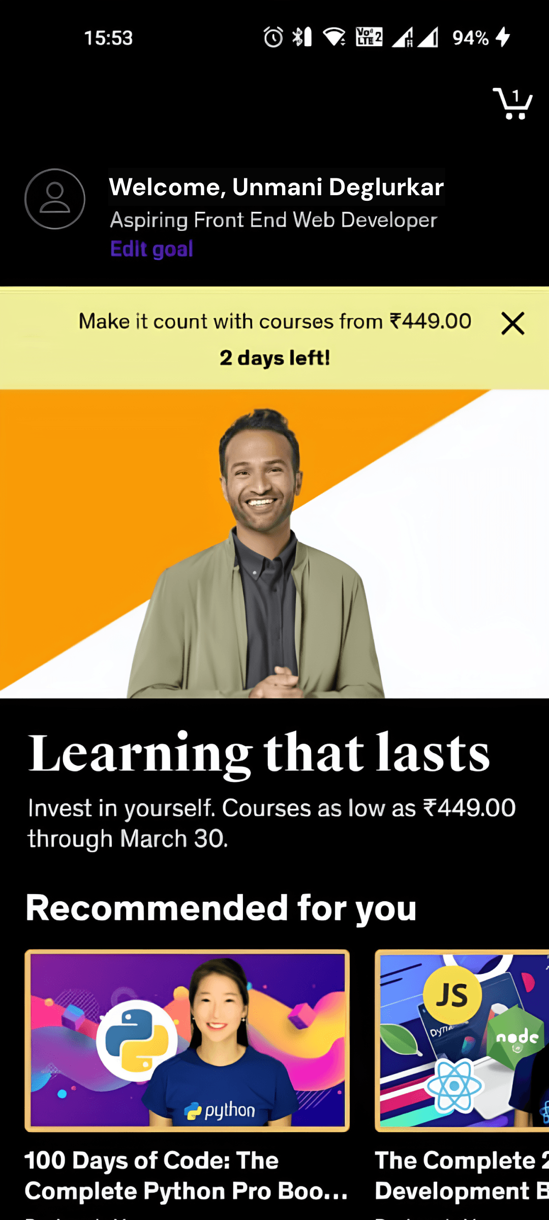 Udemy's mobile app.