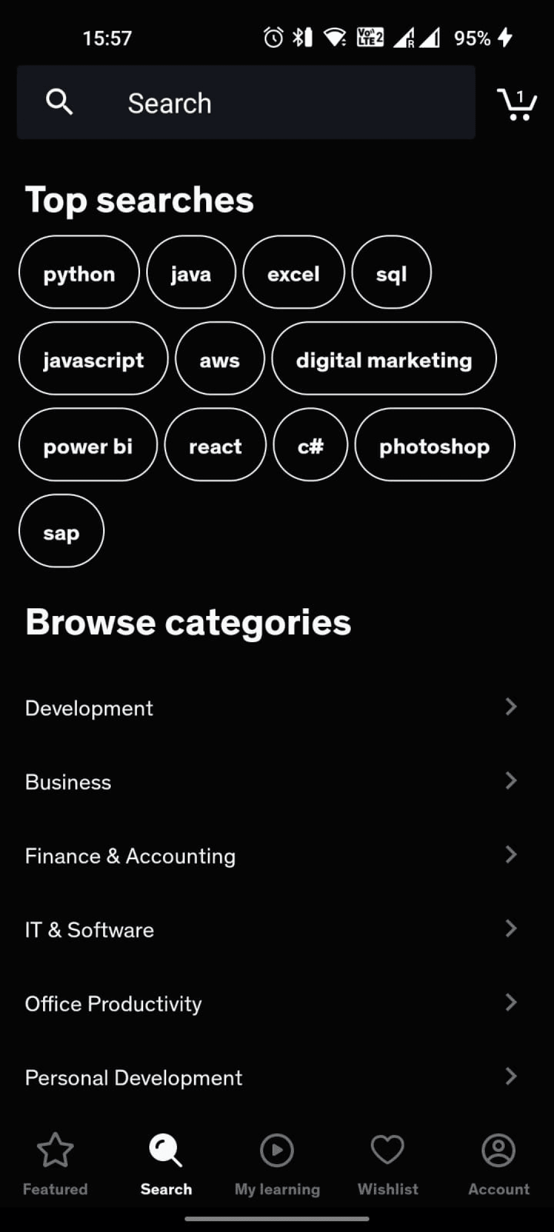 The presence of a dedicated in-page search bar, coupled with user-friendly filter chips, amplifies the prominence of search functionality, enhancing ease of navigation and discovery. Additionally, this strategic implementation boosts the visibility of courses pertaining to specific topics, enriching the user experience with enhanced accessibility.